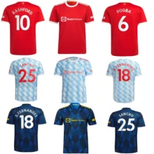 In addition to home and away game jerseys there are also home and away pre-match jerseys. The Manchester United jersey is available for men women and kids and is made from fabrics that wick moisture. 21-22 Manchester United away soccer jersey 2021 2022 football shirt.
